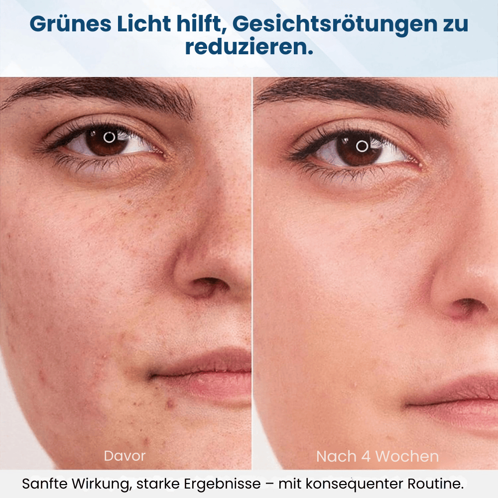 - Grünes Licht (520 nm) – Beruhigt empfindliche Haut & gleicht Pigmentflecken aus